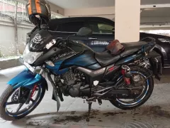 Hero Hunk is a muscular looking commuter bike. This bike of Hero brand has 149.2 cc, air cooled, 4 - stroke single cylinder OHC engine. The engine can produce 10.6 kw of power and 12.8 Nm of torque. The engine has a 5 speed gearbox for power transmission. The cost-effective bike can cover more than 60 kilometers per liter of fuel. The riding position of this commuter bike with an upright handlebar is quite comfortable. Hero Hunk is equipped with telescopic hydraulic shock absorber at front suspension and at rear rectangular swing arm with 5step adjustable inverted gas reservoir suspension to make riding comfortable and smooth. Hero Hunk bike has a single disc braking system.